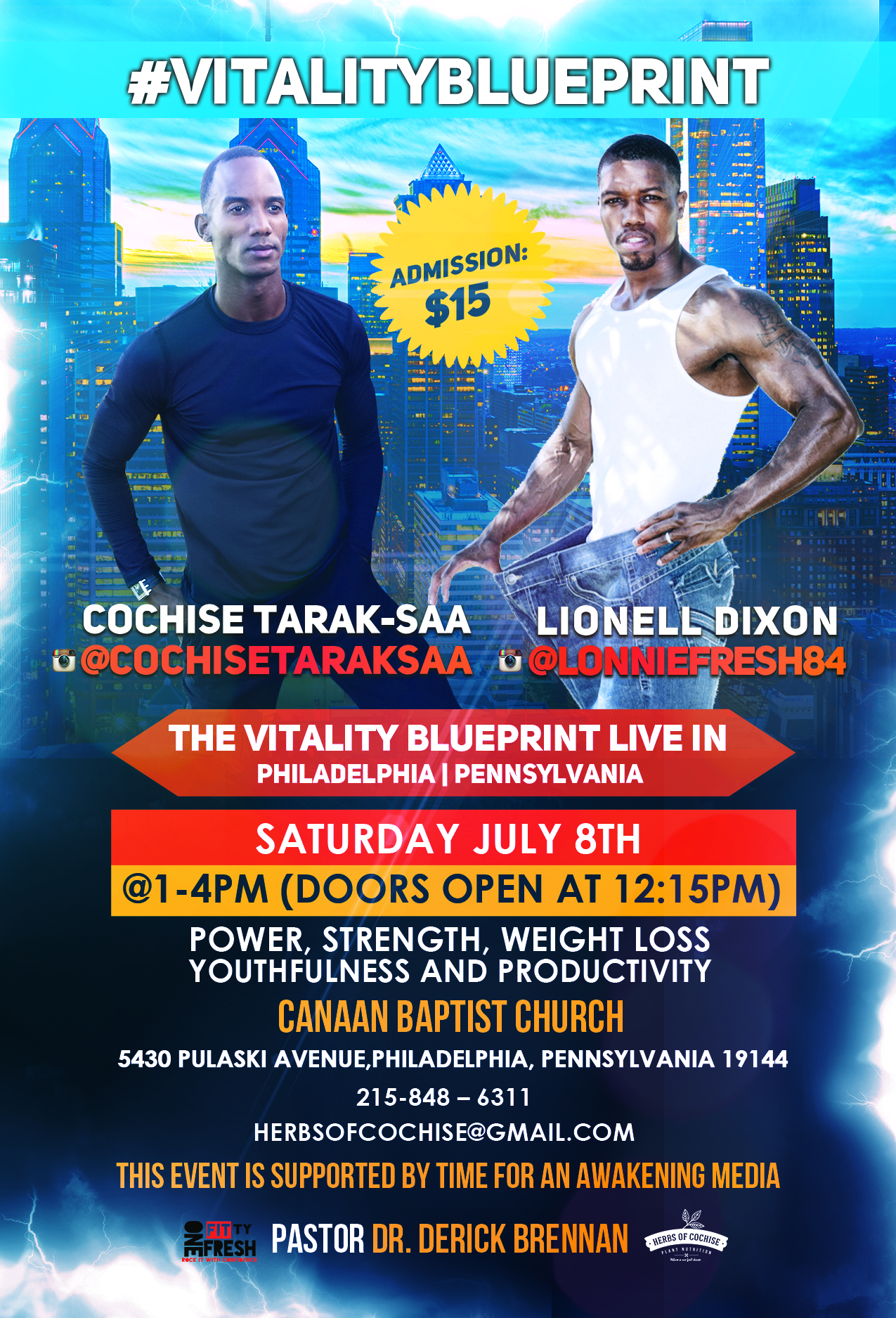 Join Time For An Awakening as we LIVE broadcast Saturday July 8th, in the city of Philadelphia. We will be talking with Cochise Tarak-Saa and Lionell Dixon about power, strength, weight loss, youthfulness and productivity!