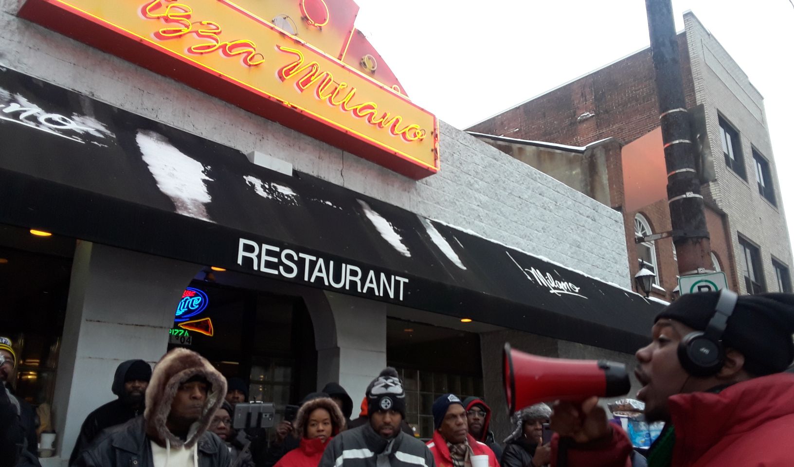 The New Pittsburgh Courier, the Voice of Black Pittsburgh, was on hand as hundreds of African Americans in Pittsburgh protested Pizza Milano’s, on Fifth Ave. in Uptown, Saturday, Jan. 13. The protests come on the heels of a video reportedly showing a Pizza Milano’s employee wrestling a Black female customer to the ground, Jan. 12, then repeatedly banging her head against the floor. Pittsburgh police officers from Zone 2 are investigating the incident.