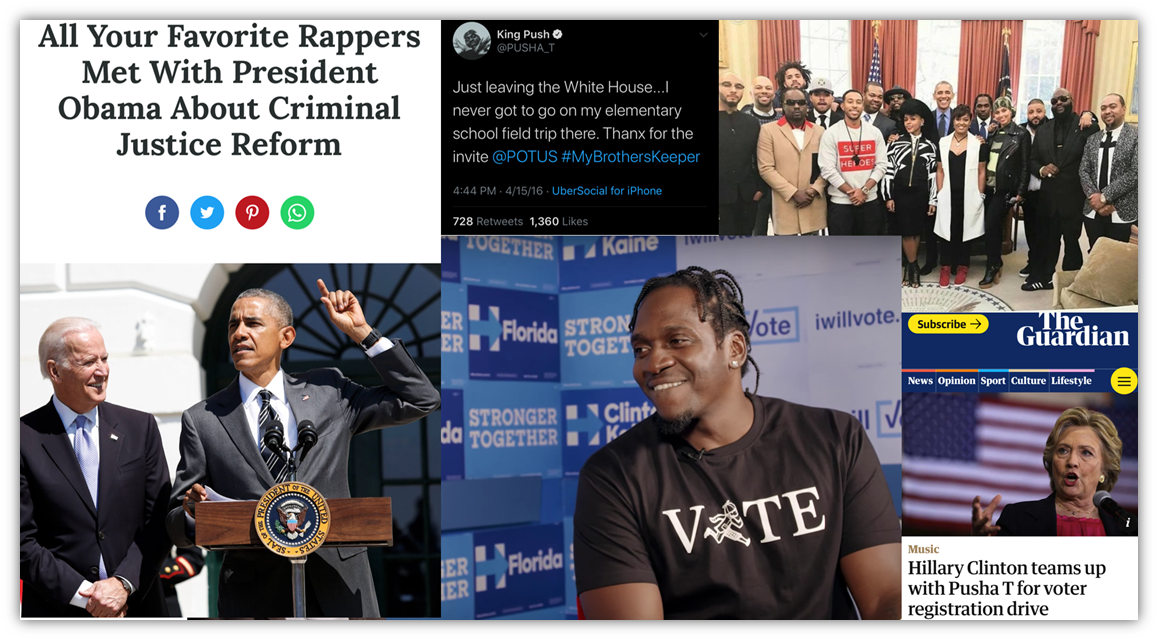 To add even more weight behind this political gambit, Obama summoned his version of Eisenhower’s “Jazz Ambassadors” to the white house, in the middle of a hotly contested Democratic Primary between HRC and Bernie Sanders, for a so-called “Criminal Justice Reform” summit (4/15/16), which was nothing more than a thinly veiled Hip Hop recruitment gathering for Hillary ’16.