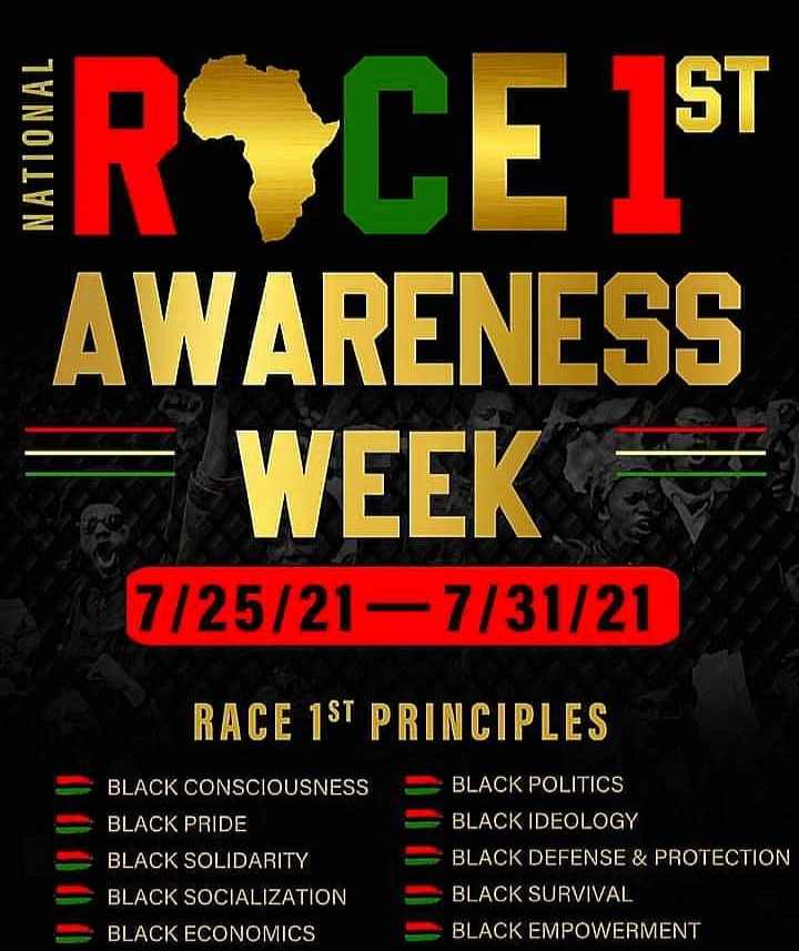 “Time for an Awakening” with Bro.Elliott, Friday Edition 7/09/21at 8:00pm. The conversation centered around the upcoming National Race First Awareness Week 7-25-21 thru 7-31-21 and the 2nd Annual Race First Rally the will take place in 6 different cities simultaneously on Saturday, August 28th. Bro. Obawajumi and Dr. Carl Tone Jones of Philly Pa., Bro. Mike Surgeon of Columbus OH. Bro., Bro. Obafemi of Pine Bluff AK. were part of the conversation.